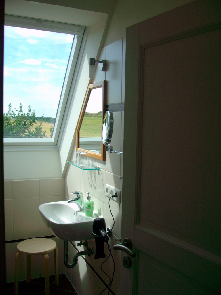 • Badezimmer: Modernes Bad mit Dusche, WC & Fön.
